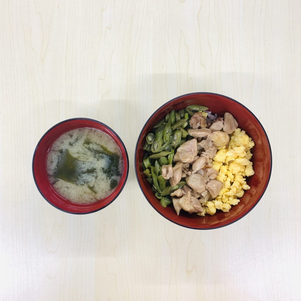 本日の献立:鶏照り焼き丼、わかめの味噌汁