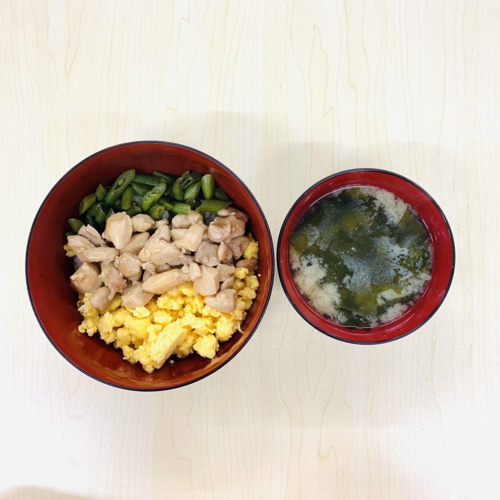 本日の献立:鶏照り焼き丼、わかめの味噌汁