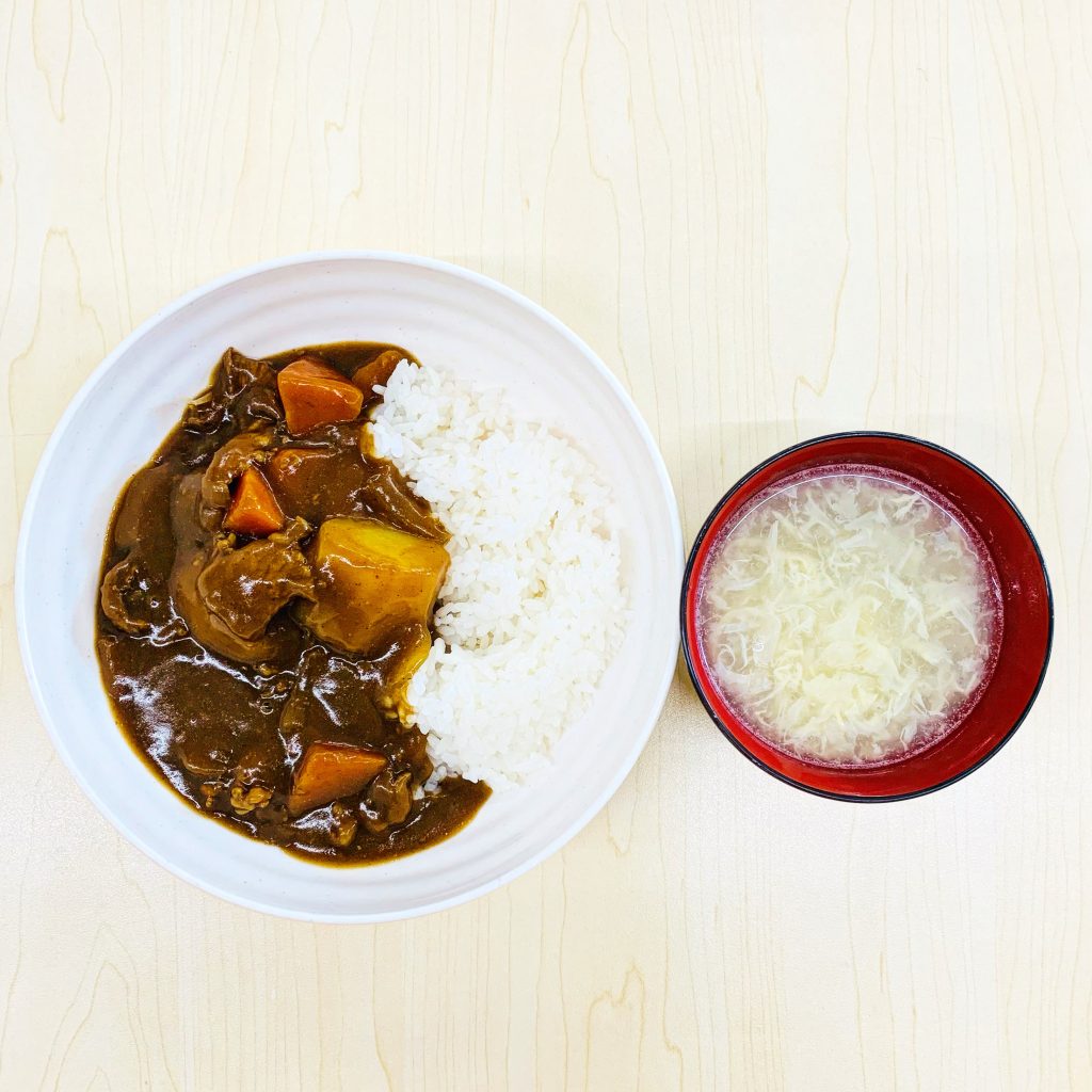 本日の献立:ポークカレー、卵スープ