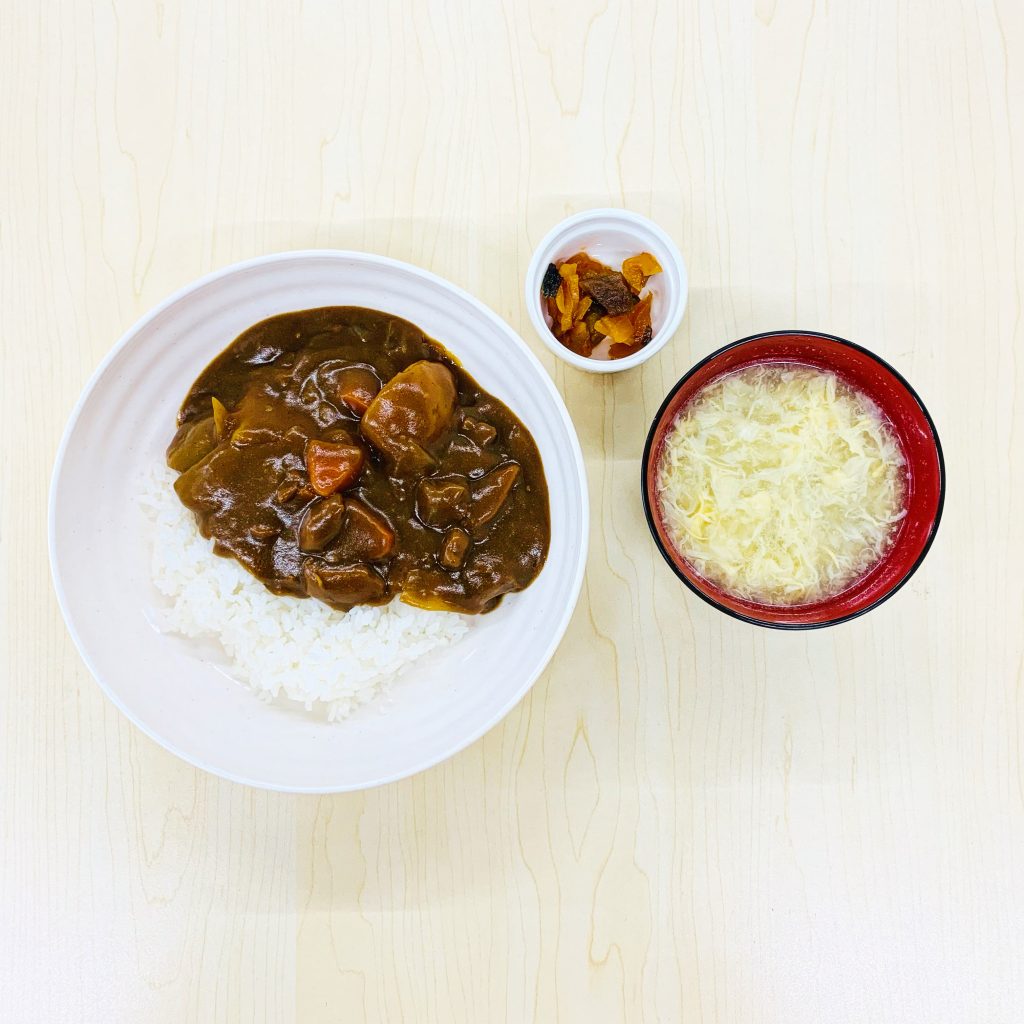 本日の献立:カレーライス、玉子スープ、福神漬け