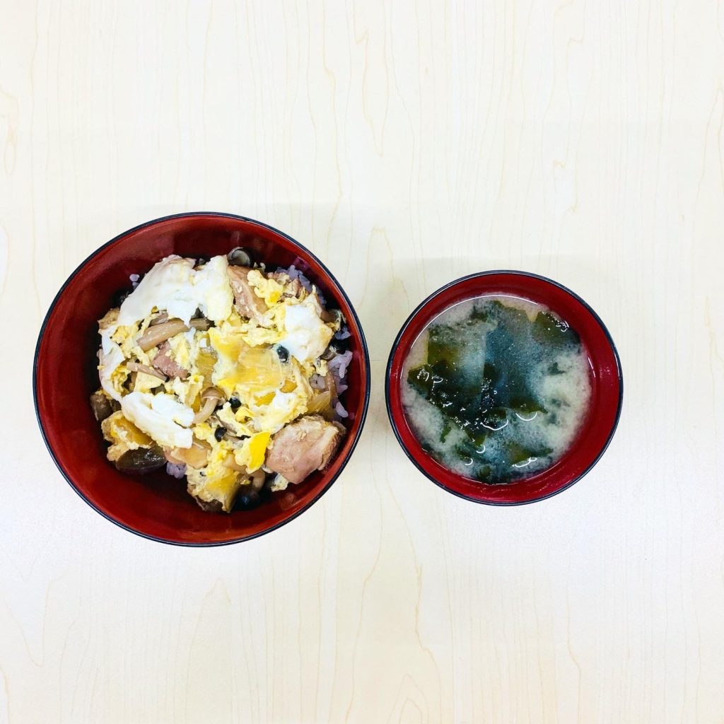 本日の献立:親子丼、わかめとじゃがいものお味噌汁