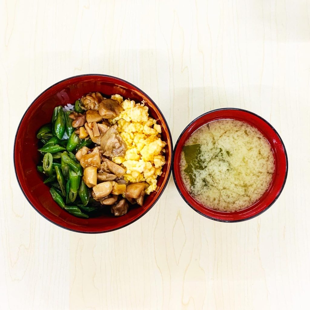 本日の献立:鶏照り焼き丼、わかめのお味噌汁