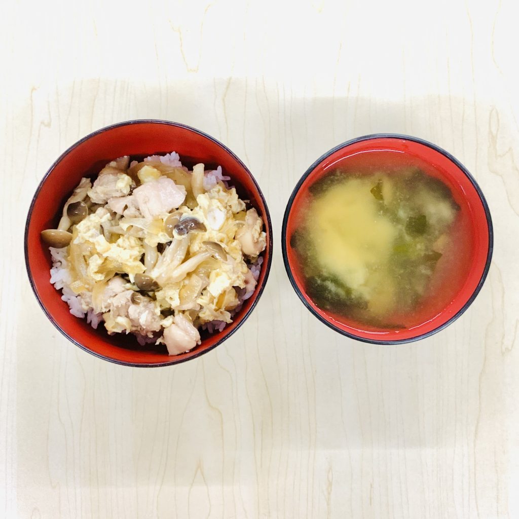 本日の献立:親子丼、わかめのお味噌汁