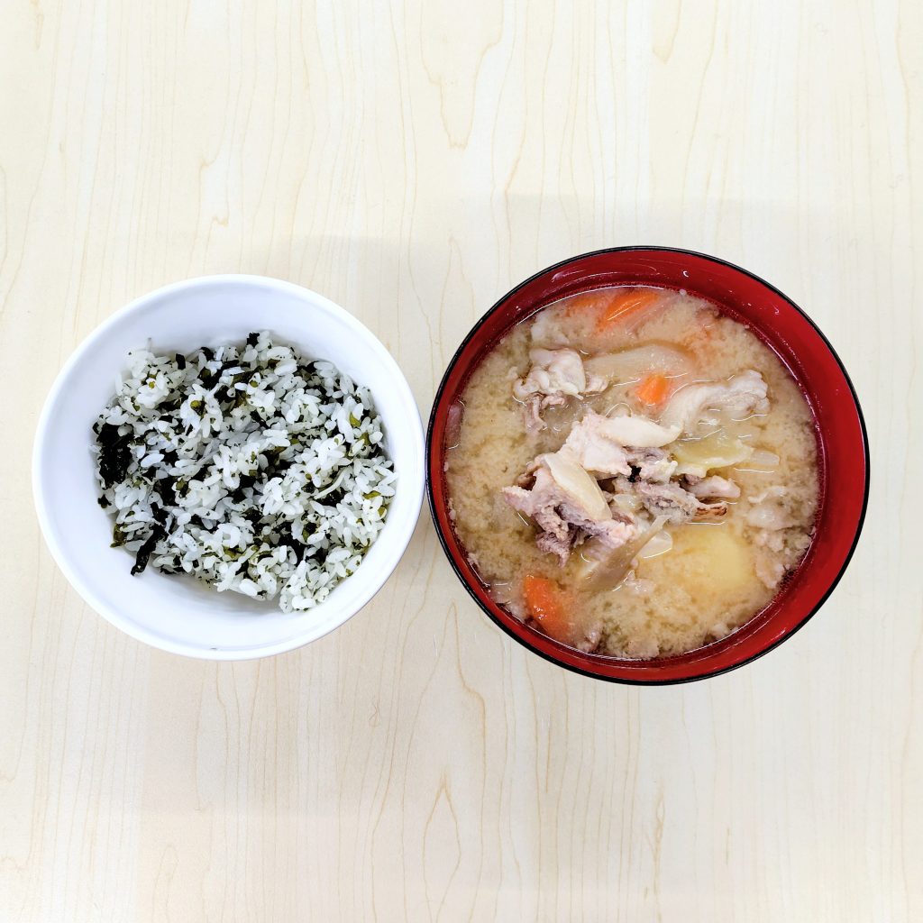 本日の献立:わかめご飯、豚汁