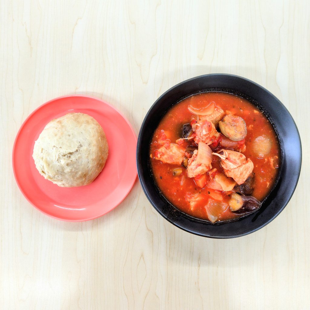 本日の献立:鶏と野菜のトマト煮込み、自家製パン
